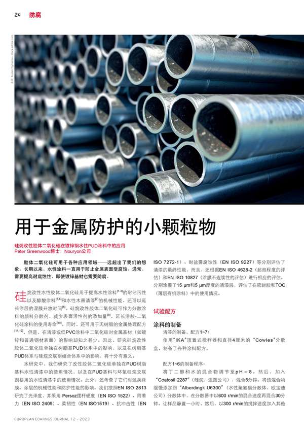 硅烷改性膠體二氧化硅在鍍鋅鋼水性PUD涂料中的應用