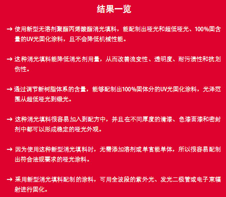 結(jié)果表明,在配制100%輻射固化涂料時(shí),這種新型消光填料不僅能提高配方效率,還能改善配方設(shè)計(jì)的靈活性。