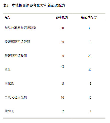 以下實(shí)例為專門(mén)用于木質(zhì)和紙質(zhì)基材的涂料。參照配方和新起試配方如表2所示。
