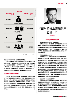 摘要:Tronox公司和Cristal 公司的TiO 2業(yè)務合并后, 成為了世界上最大、 最高度整合的TiO 2顏料制造商, 在6大洲擁有資產(chǎn)和業(yè)務