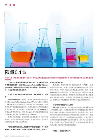 2018年5月,歐洲化學(xué)品管理局(ECHA)發(fā)布了其責(zé)任委員會關(guān)于計(jì)劃限制二異氰酸酯的意見書。預(yù)計(jì)歐盟將在未來幾個月內(nèi)通過相關(guān)的法規(guī)。