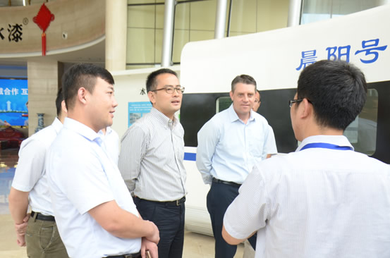 亨斯邁亞太區(qū)商務(wù)總監(jiān)Shane Woodward對(duì)晨陽水漆的現(xiàn)場(chǎng)管理、技術(shù)實(shí)力及公司對(duì)水性涂料方面的貢獻(xiàn)表示肯定,并不時(shí)詢問相關(guān)情況,對(duì)共建聯(lián)合實(shí)驗(yàn)室的方案表示認(rèn)可。期間,雙方還就工程機(jī)械水性化涂裝、大型車輛水性化涂裝、石油管道防腐水性化涂裝等進(jìn)行交流討論,并達(dá)成初步合作意向。