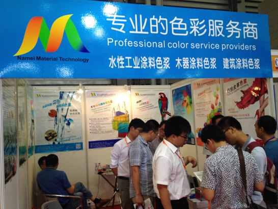 2015年中國國際涂料博覽會暨第十八屆中國國際涂料展覽會期間,納美新材的迷你展示空間抵檔不住觀眾的熱情,現場專業觀眾對納美新材的水性汽車漆和木器漆色漿產品表現出極大的興趣,不僅索取資料,還與公司技術人員進行了深度交流,公司技術人員的專業講解得到了現場觀眾的認可和贊同,再次鞏固了納美新材國內領先的水性色漿地位。