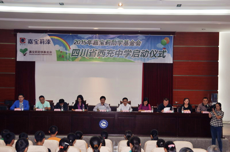 10月19日,2015年嘉寶莉助學(xué)啟動(dòng)儀式在四川省西充中學(xué)拉開序幕。馮浪等來自西充縣轄19個(gè)鄉(xiāng)鎮(zhèn)的25名高一優(yōu)秀貧困學(xué)子獲得了每人2000元的資助,并將連續(xù)獲得高中三年的資助。這也是嘉寶莉助學(xué)點(diǎn)首次落戶第一屆中央人民政府副主席、民盟創(chuàng)始人張瀾先生的故里。