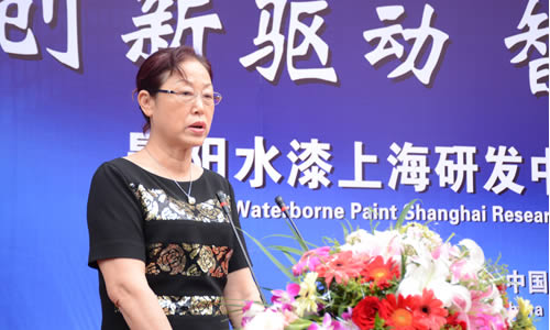 中國涂料工業協會會長孫蓮英在晨陽水漆上海研發中心揭牌儀式上致辭