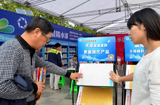 水性涂料無毒無味、節能環保特性吸引了眾多參觀者前來咨詢