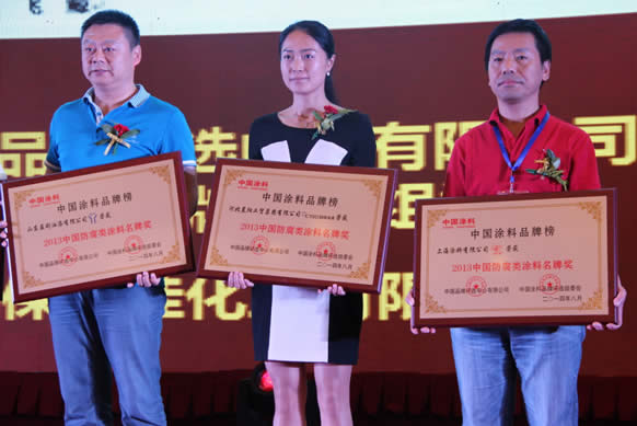 晨陽集團總裁助理呂秋紅代表晨陽集團領取中國防腐類涂料名牌獎