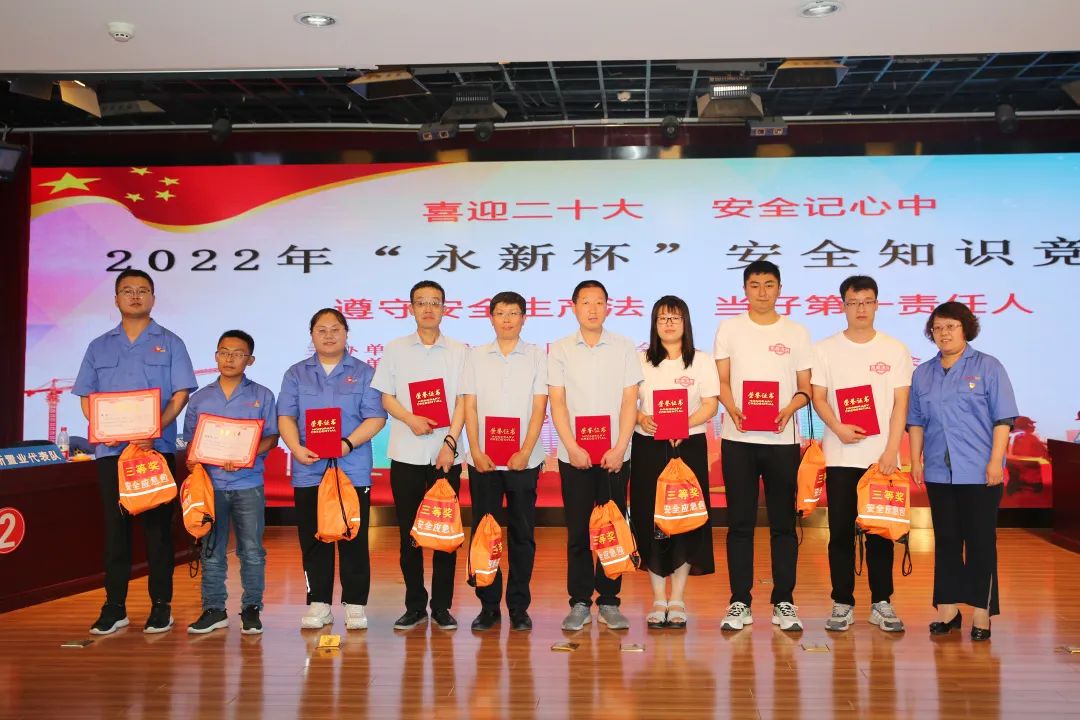 2022年6月22日,由公司安委會舉辦的“喜迎二十大,安全記心中”“永新杯”安全知識競賽在九樓多功能廳舉行。來自公司機關、永新涂料、永新大貿、永新置業、永新管業共6支參賽隊參賽。舉辦此次活動旨在強化全員安全紅線意識,普及安全知識,提高安全素養,推動公司安全文化建設,提高落實主體責任的能力。