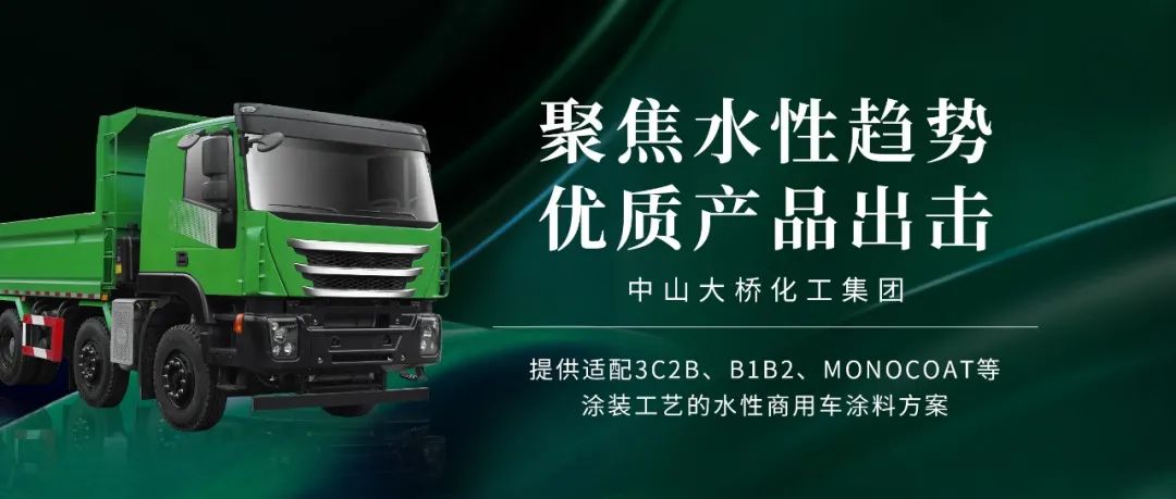 2019年,中山大橋化工集團水性monocoat產品在中國農用車頭部企業處得到規模應用,年用量360噸,實現了水性monocoat產品應用零的突破。此后幾年,水性monocoat產品更是先后在多家知名商用車企的多款車型上大放異彩,為水性monocoat產品在高端商用車上的應用累積了寶貴經驗。