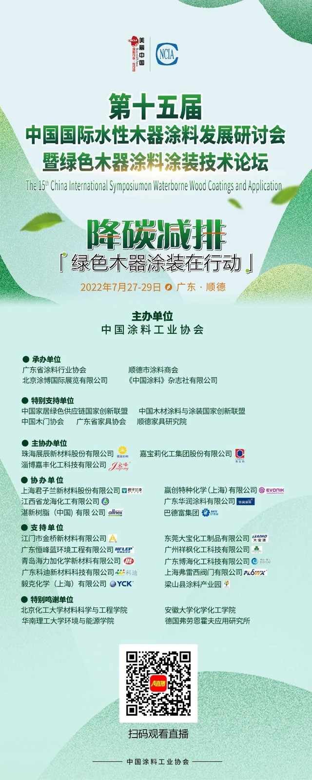 本屆研討會以“降碳減排,綠色木器涂裝在行動“為主題,與對接會趨向一致,積極貫徹新發展理念,倡導綠色低碳生產生活方式,助力實現“碳達峰”、“碳中和”目標,落實《中國涂料行業“十四五”規劃》,以推動環境友好型木器涂料涂裝的發展。
