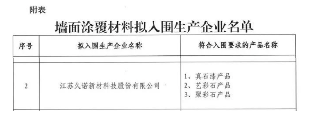 入圍|久諾強勢入圍雄安新區墻面涂覆材料企業名單