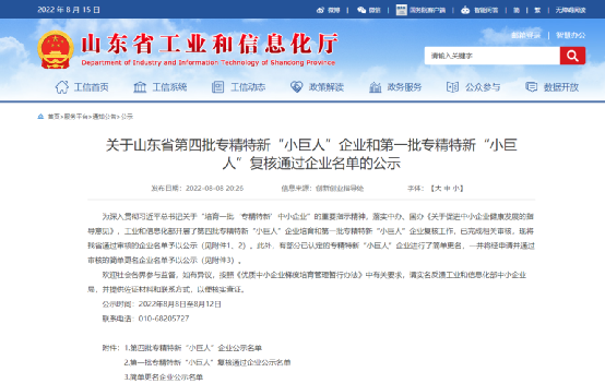 8月8日,山東省工信廳公示了我省通過審核的第四批國家級專精特新“小巨人”企業(yè)名單,山東奔騰漆業(yè)股份有限公司成功入選。