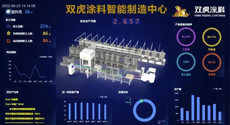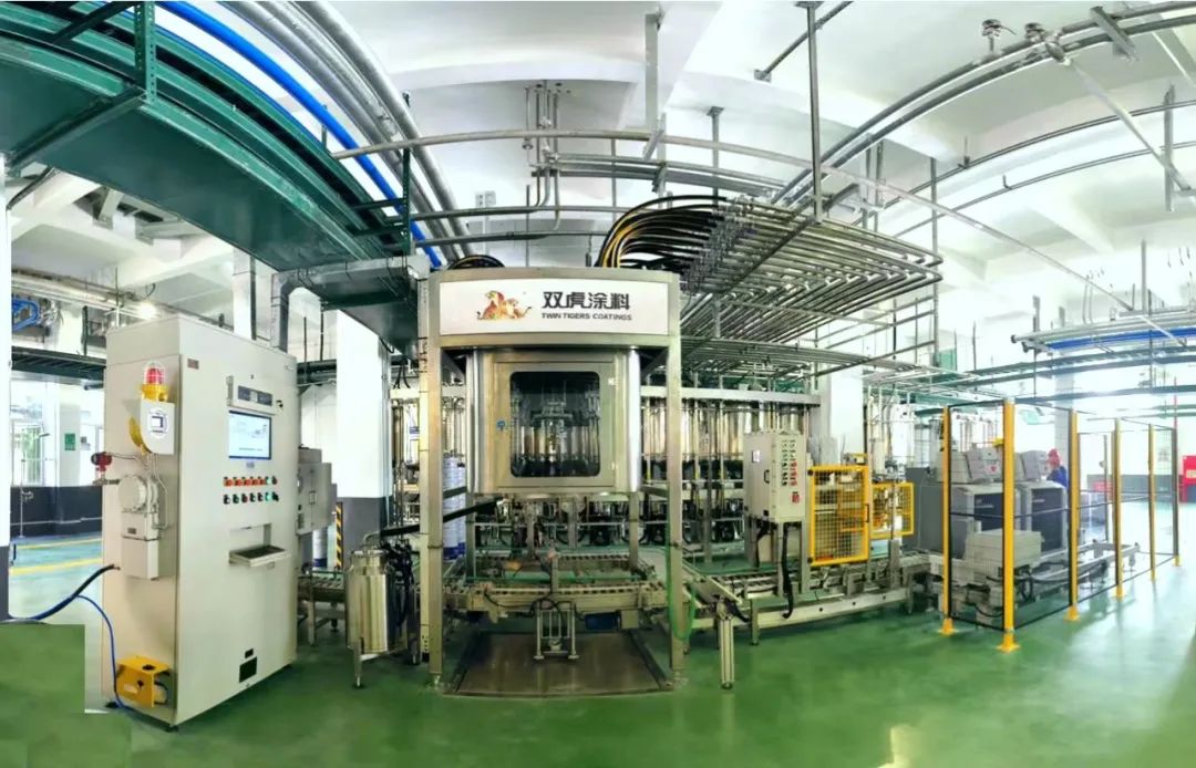 雙虎涂料為進一步把握發(fā)展機遇,在以“聚焦防腐,軍民兩用,涂裝一體”的戰(zhàn)略規(guī)劃指引下,以“產(chǎn)學(xué)研策保研發(fā)、智能制造保交付”的經(jīng)營策略來賦能公司高質(zhì)量發(fā)展,底漆、中涂實現(xiàn)體系標(biāo)準(zhǔn)化生產(chǎn),各類、各色、多批量的面漆通過智能制造來解決,全方位解決個性化涂料配套體系難題。