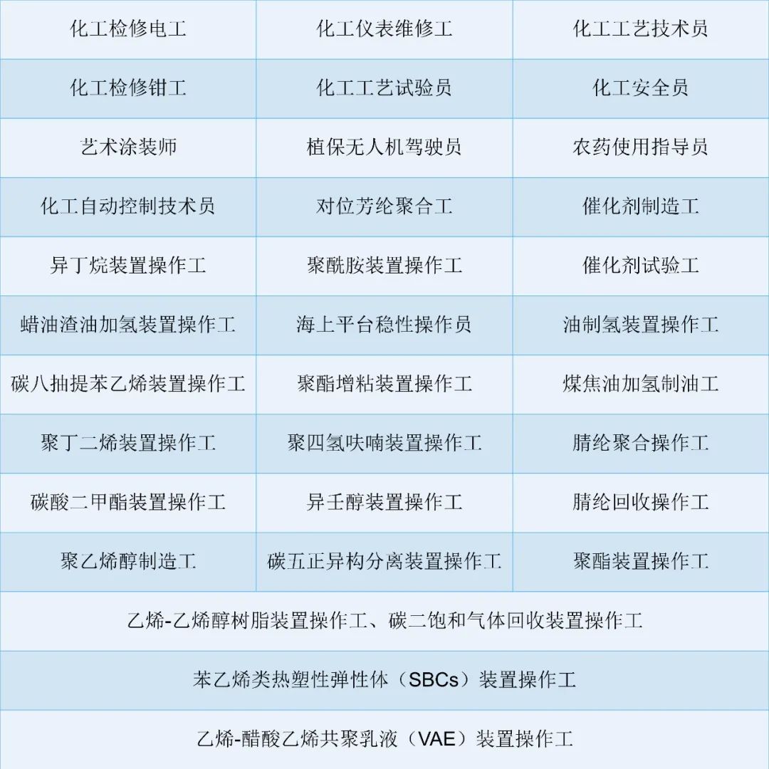《中華人民共和國職業分類大典(2022年版)》(公示稿)中編錄了石油和化工行業提交的數字職業1個,新職業2個,新工種34個,更名工種1個。