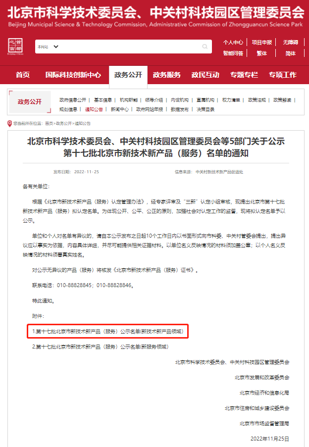 近日,北京市科學技術委員會、中關村科技園區管理委員會等部門公布了第十七批北京市新技術新產品(服務)認定名單。