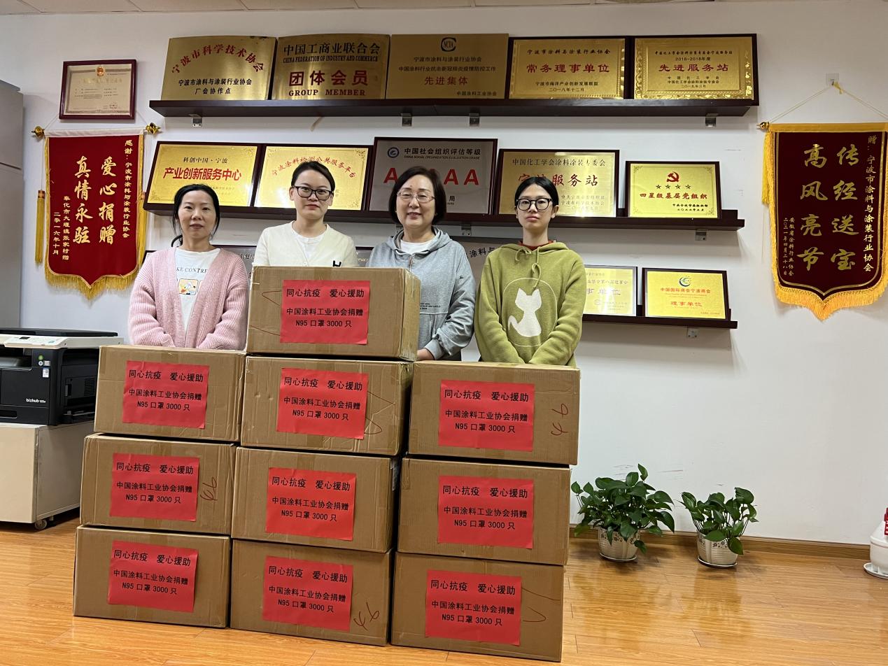 近日,寧波市涂料與涂裝行業(yè)協(xié)會收到中國涂料工業(yè)協(xié)會捐贈的KN95口罩3000只,助力寧波疫情防控工作,以實際行動踐行社會團體的責任與擔當,彰顯同心抗疫、共克時艱的涂料人精神。