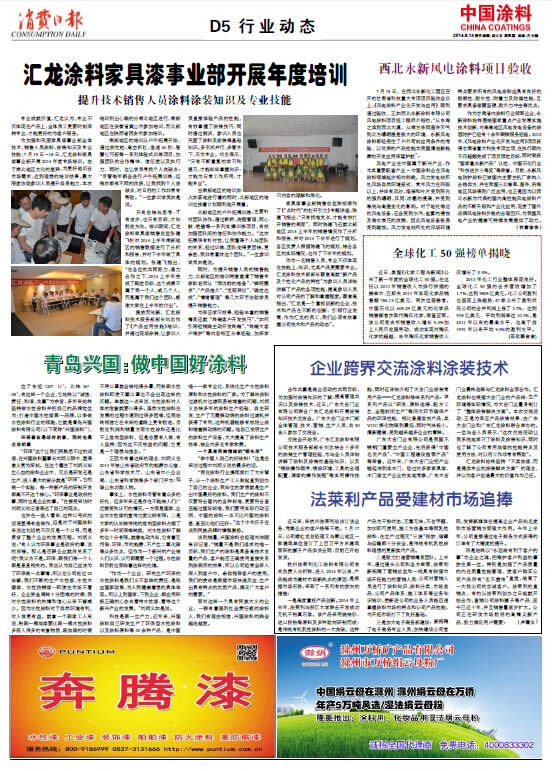 《中國涂料報》(電子版)的一切內容(包括但不限于文字、圖片、PDF、圖表、標志、標識、商標、版面設計、專欄目錄與名稱、內容分類標準以及為讀者提供的任何信息)僅供中國涂料信息網讀者閱讀、學習研究使用,未經中國涂料雜志社有限公司及/或相關權利人書面授權,任何單位及個人不得將《中國涂料報》(電子版)所登載、發布的內容用于商業性目的,包括但不限于轉載、復制、發行、制作光盤、數據庫、觸摸展示等行為方式,或將之在非本站所屬的服務器上作鏡像。否則,中國涂料雜志社有限公司將采取包括但不限于網上公示、向有關部門舉報、訴訟等一切合法手段,追究侵權者的法律責任。