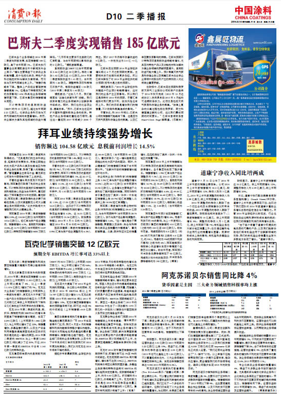 中國(guó)涂料報(bào) 2014年8月14日 星期四