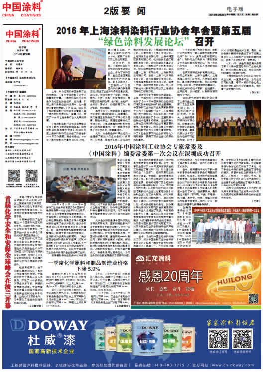 2016年上海涂料染料行業(yè)協(xié)會年會暨第五屆 “綠色涂料發(fā)展論壇”召開